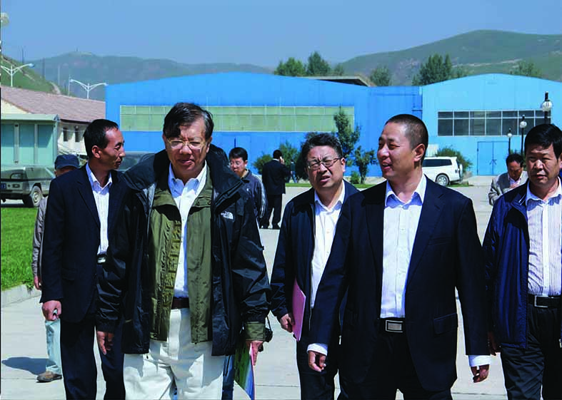 中國(guó)國(guó)際貿(mào)易促進(jìn)委員會(huì)秘書(shū)長(zhǎng)徐瀘濱(左二)在原甘南州商務(wù)局局長(zhǎng)張明民,華羚集團(tuán)董事長(zhǎng)敏文祥(右二)的陪同下視察華羚公司